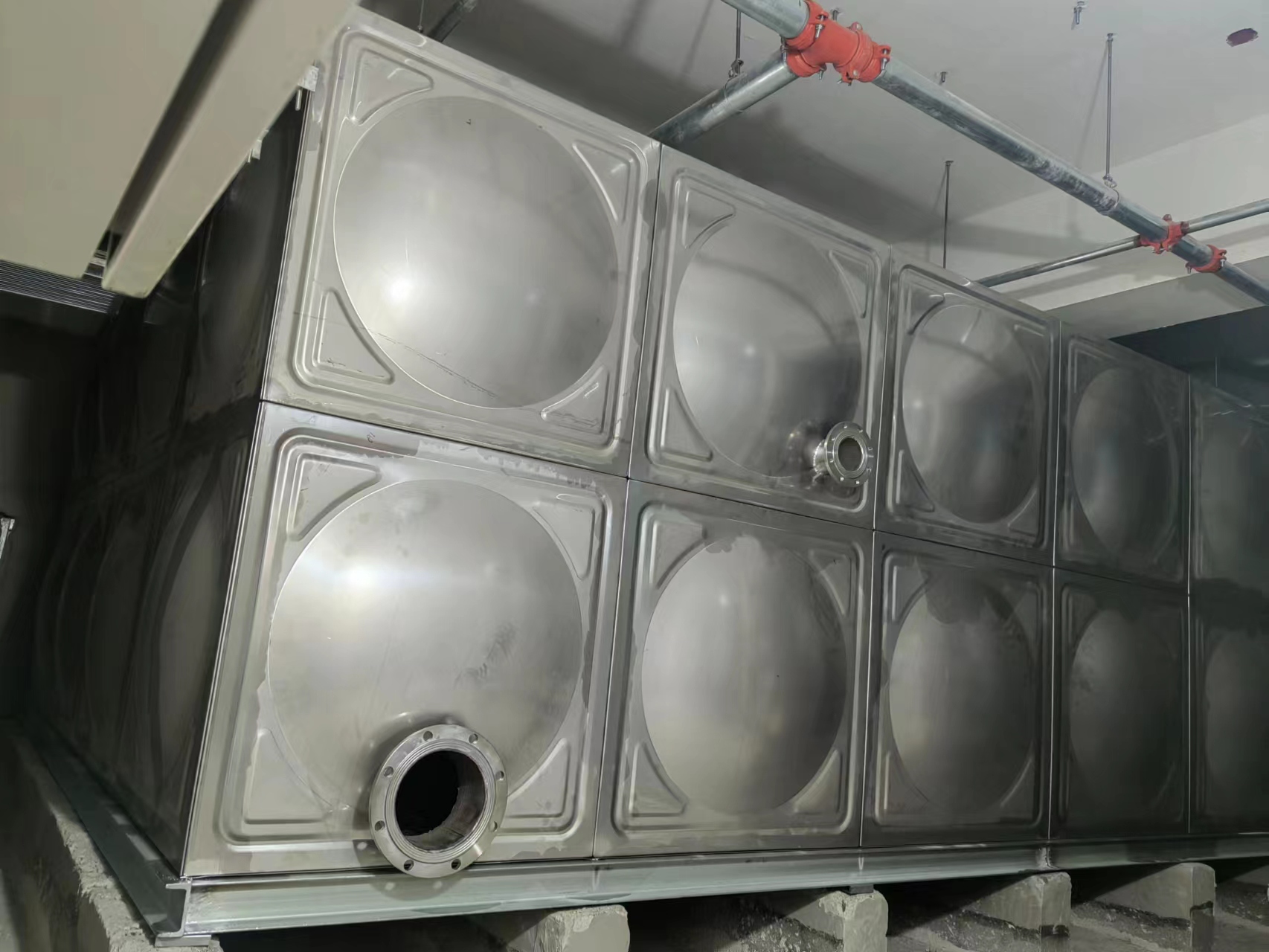 1、焊接底架:根據(jù)水箱板塊尺寸確定槽鋼的間距,首先將槽鋼點(diǎn)焊固定,用水平尺 校 對,其平整然后再整體焊接。