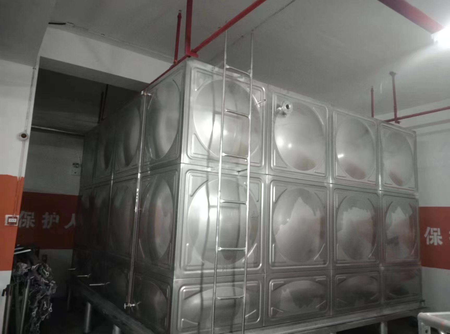 5、安裝附件 按照水箱結(jié)構(gòu)將內(nèi)部拉桿固定完成,并安裝內(nèi)外梯。